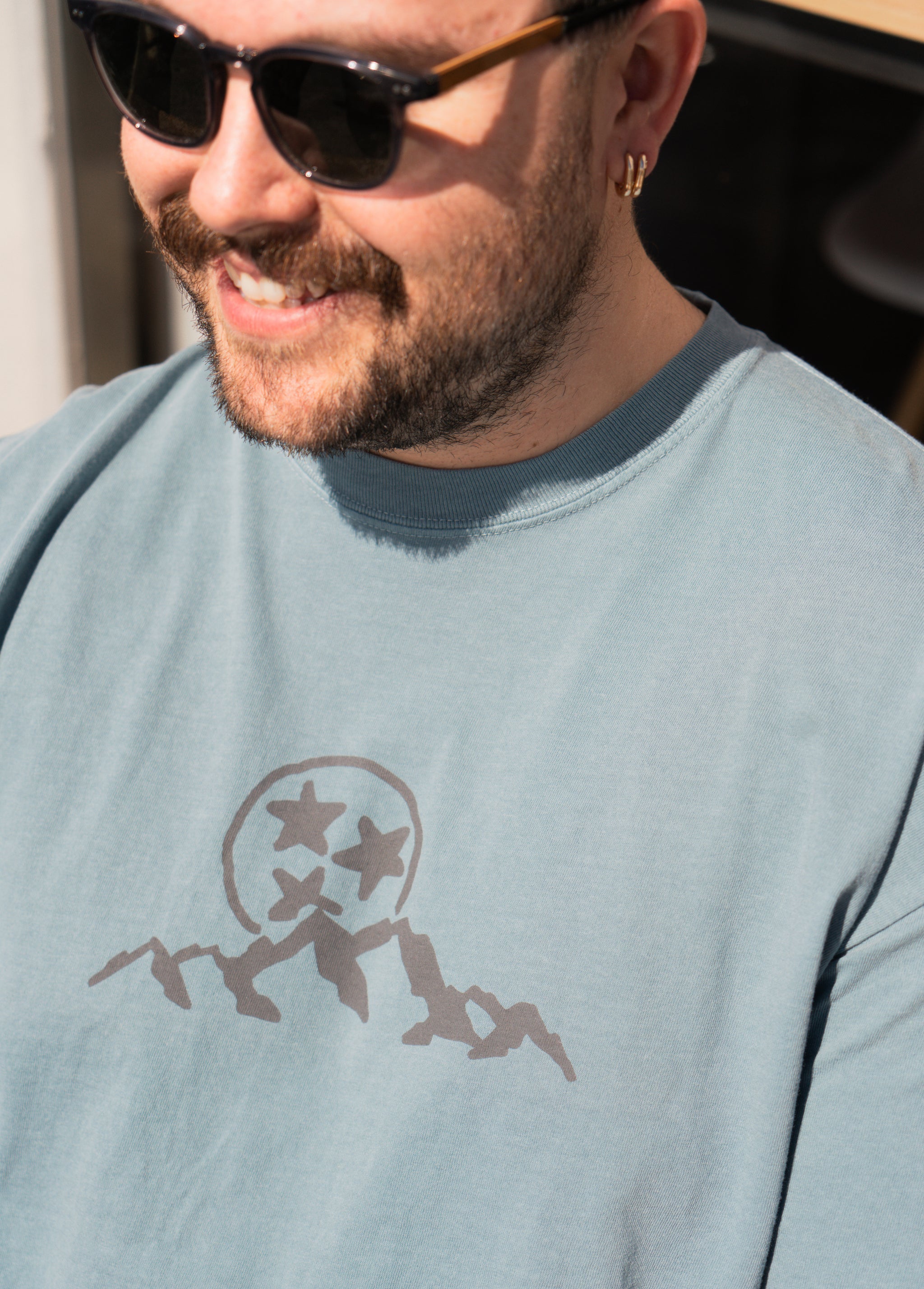 Jessica is our resident tiny model, at a flat 5 feet tall, she's rockin' a Size Extra Small Tee and Weston is our rad graphic designer at 5' 8" tall and rocking a Size Medium Tee made with a tri-blend of 50% polyester, 25% cotton and 25% rayon. 🤘🏽